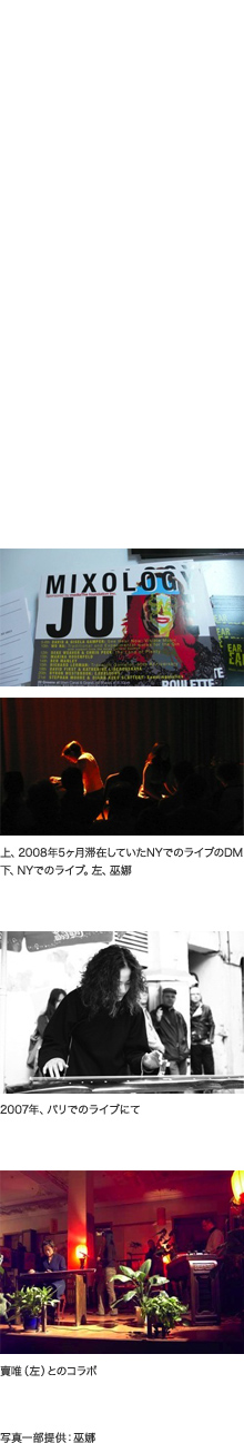 W:特に何をしたというわけではないのですが、毎日、美術館や博物館に行って展示を見たり、ライブに足を運んだり、ニューヨーク在住のミュージシャンと交流をもったりしていました。見て、聞いて、学んで。どれだけ学ぶことができたのかは今は口では言えませんが、学んだものはすべて身体の中に吸収できたと思います。これから、ニューヨークで学んだことを消化し、自分自身のものにする必要があると思っています。 また、ニューヨークという街には、あらゆる善悪が集まってきます。今回、日本のエレクトロニックミュージシャンと他のミュージシャンとのコラボを見たのですが、彼らの即興での演奏があんなにもすばらしいなんて、びっくりしました。それぞれが発する音は違うのに、現場でミックスされることでいい効果を生んでいる。メロディーはなく、非常に抽象的な音なんだけれど、すばらしい。以前、ドイツで聞いたコラボとは全く違う感じでした。ドイツのピアニストは椅子に座って弾くのではなく、立ったまま様々な動作を取り入れて、演奏というより、叩くといった感じで音を出していました。でも、ニューヨークで見たコラボは、伝統的な演奏方法にのっとって、新たな音を生み出している。そのような違いを感じましたね。